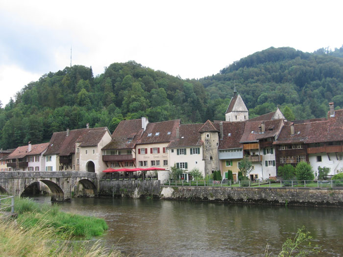 Wir fahren von Emmendingen über Freiburg und Basel nach St. Ursanne, einem kleinen teilweise noch mittelalterlichen Städtchen an der nördlichsten Schleife des Doubs, der hier die Richtung von NO nach SW ändert. Er entspringt im französischen Jura, fließt zeitweilig durch die Schweiz und endet in der Saone, einem Nebenfluss der Rhone.
