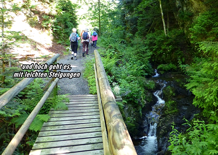 Nach einer guten halben Stunde gehen wir weiter. Über einen tollen Waldweg gehen wir in Richtung Bachlauf vom ''Rüttebächle'' und zum Ortsteil Todtmoos-Rütte. Nach dem Ortsteil Todtmoos-Rütte kommen wir zum Todtmooser Wasserfall, der sich im Wasserlauf des Rüttebächle befindet. Ab nun gehen wir weiter in Richtung Todtmoos-Strick, wobei wir den alten nicht mehr exestierenden ''Kaffeepfad'' streifen. In Todtmoos-Strick angekommen besichtigen wir noch die Josefskapelle. Dann geht es endlich zu unserer wohlverdienten Einkehr im Hotel Schwarzwald-Gasthof Rößle.