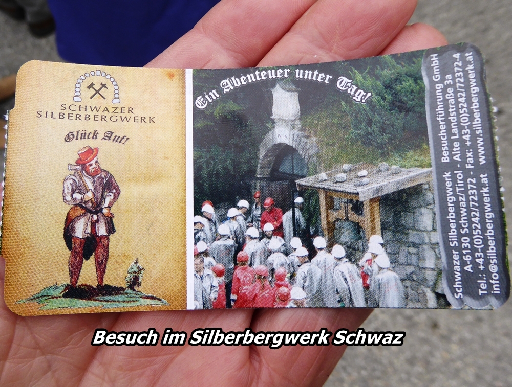 Der Ausflugstag am Freitag war zunächst dem Silberbergwerk in Schwaz gewidmet. Jetzt war der Himmel schon bedeckt und der Föhnsturm zeigte den bevorstehen  Wetterumschwung an. In entsprechend zünftiger Kleidung ging es mit dem Grubenhund (Grubenbahn) 800 Meter hinein in den Stollen und von dort zu einem großartigen, 1,2 Kilometer langen Rundgang durch das Bergwerk, das noch bis ins Jahr 1957 teilweise betrieben wurde.